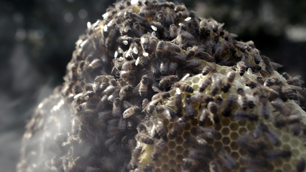 The audience is taken on a sumptuous visual and aural journey: from the centre of a natural beehive, a developing brain, a home, an office and a forest. Connecting these distinct spaces is fog. “Fog descending on the brain” is Wendy’s metaphor for how the neurocognitive disorder makes her feel.