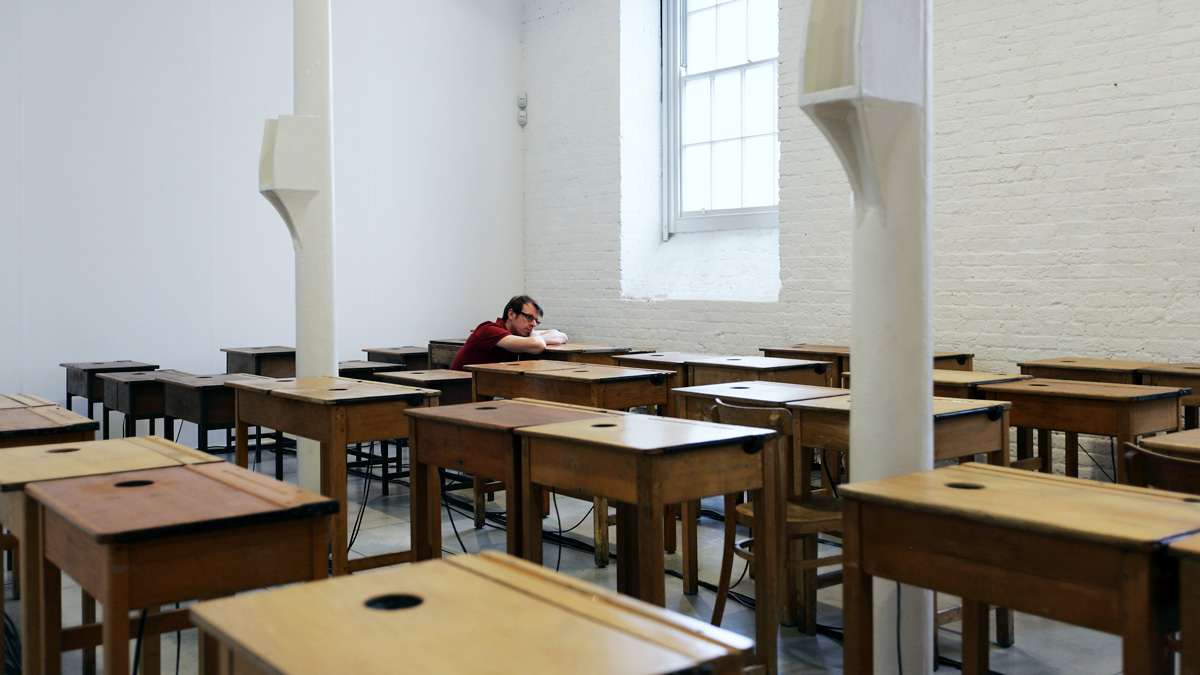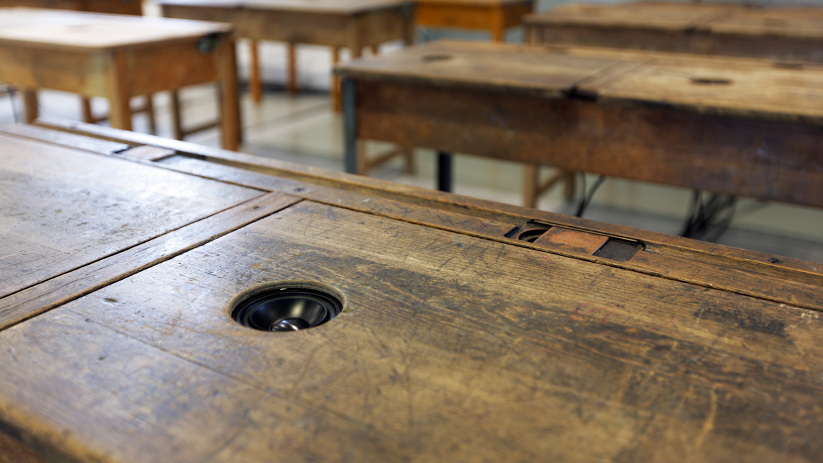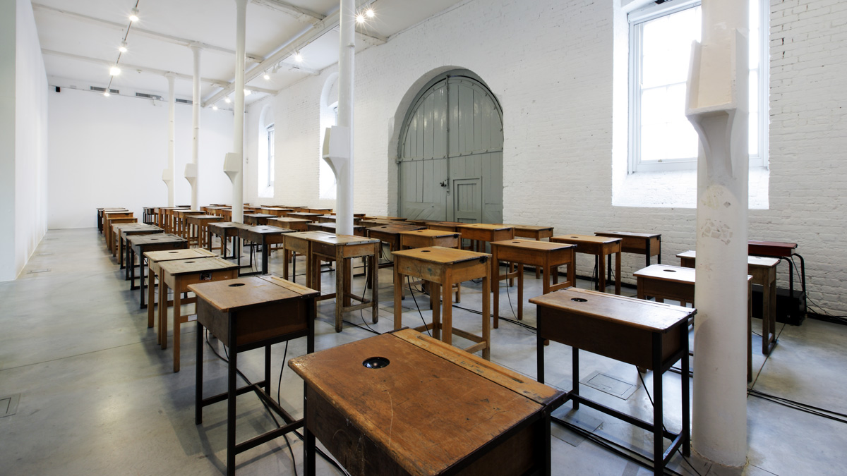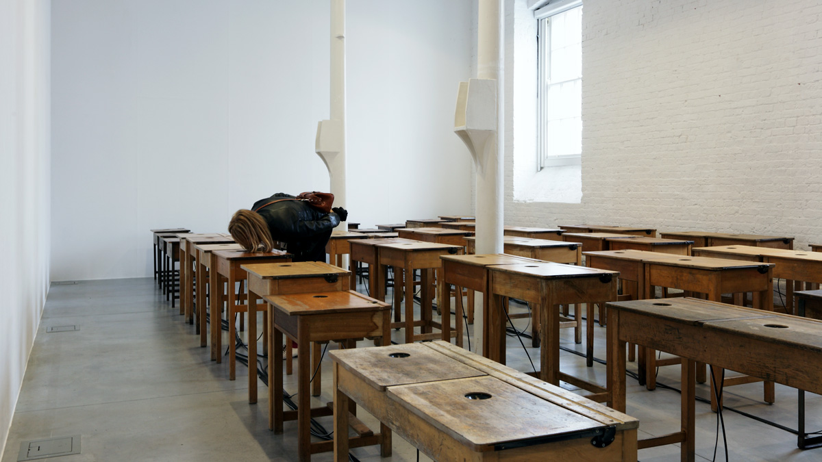 The voice of each interviewee were recorded individually and each recording was assigned to one of the school desks, arranged in rows like a classroom environment. The voices represent a cross-section of views from different cultural and social backgrounds.