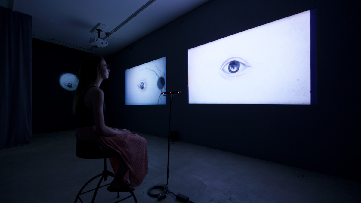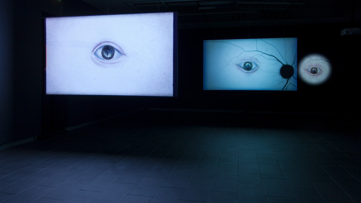 The artworks uses moving images as a starting point to unlock and investigate how multiple projections of the world focus on the physical structure of the human eye; the latest biomedical research and theory about how the brain processes and interprets sensory perception to create sight; and the role that art can play in providing metaphors to understand what perception means.